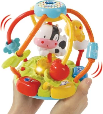 Der Greifball von VTech mit der witzigen Kuh in der Mitte vermittelt frühe Lerninhalte und verfügt über eine Leucht- und Soundfunktion mit 3 gesungenen Liedern und 15 kindgerechten Melodien.