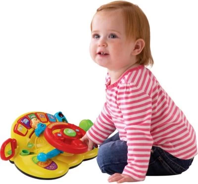 Die Lustige Fahrschule wird kleine Entdecker begeistern! Mit dem beweglichen Lenkrad, Schalthebel, Spiegel und Zündschlüssel kommt es zu echtem Rollenspiel- Spaß. Auf verschiedenen Tasten lernt das Kind spielerisch Tiere, Zahlen und Farben kennen. Zahlreiche Melodien und ein gesungenes Lied schulen das musikalische Gehör und sorgen für zusätzlichen Lernspaß.