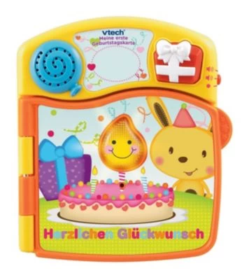 „Meine erste Geburtstagskarte“ von Vtech Baby ist ein tolles Spielzeug für die erste Geburtstagsfeier! Durch Drücken der beiden Tasten werden gesungene Lieder, lustige Geräusche und fröhliche Melodien abgespielt. Der eingebaute Sensor erkennt, wenn die Kerze ausgepustet wird. Die liebevoll gestalteten bunten Bilder runden den Geburtstagsspaß ab.