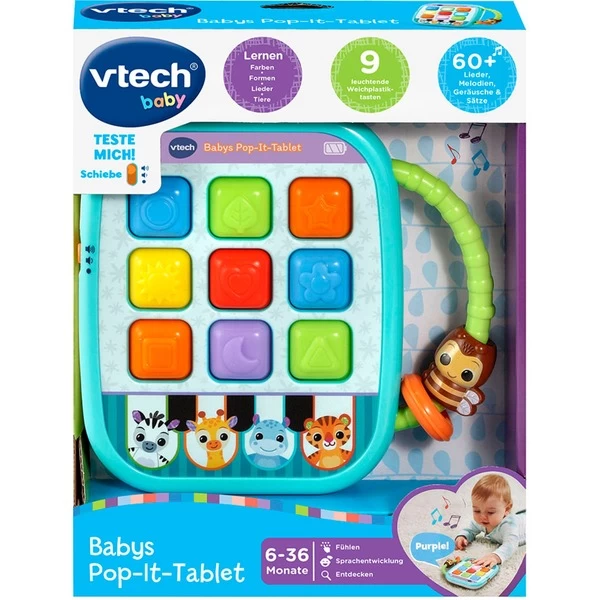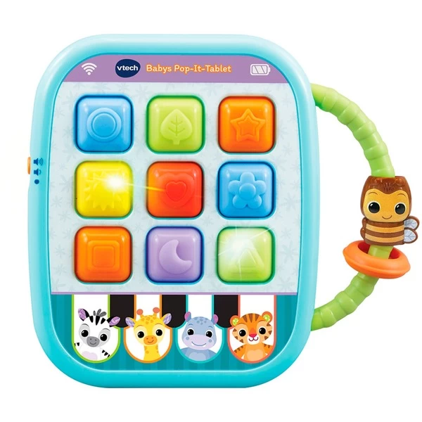 Babys Pop-It-Tablet verspricht musikalischen Spielspaß und schult nebenbei die Sinne von Kindern ab einem Alter von 6 Monaten. Formen und Farben werden hier spielerisch erlernt. Die neun Tasten aus Weichplastik leuchten und blinken zu Melodien und Musik. Außerdem haben sie verschiedene Reliefmuster und stimulieren so die taktile und visuelle Wahrnehmung.Art.-Nr.: 1895992