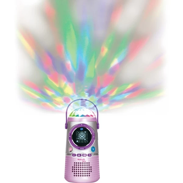 Mit dem KidiMagic Music ist die Tanzparty immer mit dabei. Dieser tragbare Lautsprecher hat vorinstallierte, gesungene Lieder und Spiele mit dabei. Über die Bluetooth-Schnittstelle, eine microSD-Karte (separat erhältlich) oder über das beiliegende Audiokabel kann eigene Musik abgespielt werden. An der Oberseite befindet sich eine LED-Leuchte, mit der tolle Disco-Atmosphäre erzeugt werden kann. Außerdem kann das Gerät als Wecker genutzt werden. Art.-Nr.: 100004766