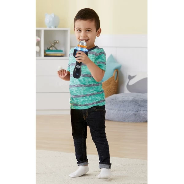 Mit dem Magischen Singspaß-Mikrofon werden auch die Kleinsten zum Superstar! Dieses leuchtende, interaktive Mikrofon kommt mit vorinstallierten Liedern und kann aber über Bluetooth auch mit einer externen Musikquelle verbunden werden. Dabei leuchtet der LED-Ring passend zur Musik und neben Leuchteffekten gibt es einen lustigen Stimmenverzerr-Effekt. Und am Ende der Vorstellung kann über die Applaus-Taste Beifall eingespielt werden.Art.-Nr.: 1819837