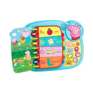 Spielzeug oder Buch? Peppas ABC-Buch von vtech überzeugt als gelungene Kombination mit fröhlichen Sound-Effekten. interaktives Buch von vtech 14 Seiten 4 Spielmodi: Alphabet, Geschichte, Buchstaben und Gegenstände finden, Musik Abschaltautomatik Sprache: Deutsch ab 2 Jahren aus Kunststoff und Pappe Auf den 14 farbenfroh gestalteten Seiten des ABC-Buchs von vtech gibt es eine Menge zu entdecken. Im niedlichen Peppa-Wutz-Design lädt das interaktive Spielzeug Kinder ab zwei Jahren zur ausgiebigen Beschäftigung ein. Die Kleinen können die vier leuchtenden Tasten des Spielzeugs oder die Peppa-Figur drücken, um Sound-Effekte zu aktivieren. Die Originalstimmen von Peppa, Mama Wutz, Papa Wutz und Schorsch bringen jede Menge Spaß ins Kinderzimmer. Nach Lust und Laune kann der Nachwuchs das Alphabet kennenlernen, Geschichten lauschen oder Buchstaben und Gegenstände suchen. Auch Musik steht ihm zur Verfügung. Hinweis Zwei Demobatterien AA sind im Lieferumfang enthalten.