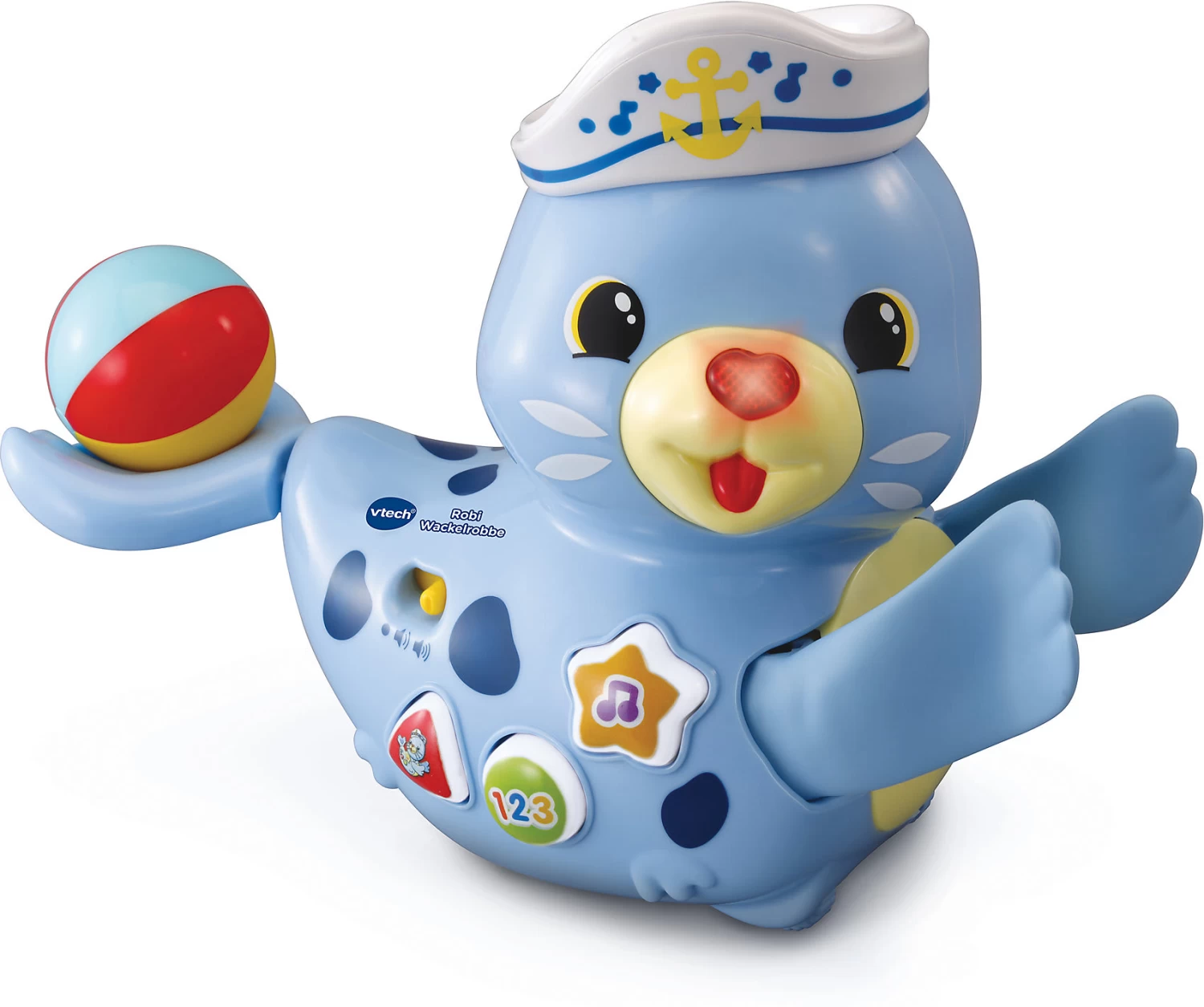Die lustige „Robi Wackelrobbe“ von Vtech bietet Kindern lustige Unterhaltung und eine Möglichkeit, spielerisch Zahlen, Farben und Formen kennenzulernen. Viele verschiedene Tasten und Funktionen sorgen für Begeisterung bei kleinen Entdeckern.