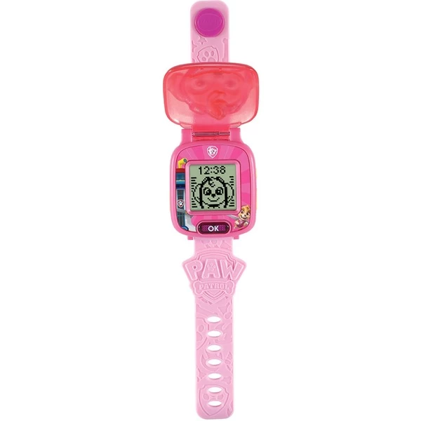 Die Skye-Lernuhr bietet vier spannende Lernspiele, eine Auswahl an verschiedenen Patrol-Ziffernblättern, eine Weckfunktion, einen Timer und eine Stoppuhr. Bei geschlossenem Deckel und Drücken der OK-Taste ertönt ein Spruch aus der Fernsehserie. Die Lernspiele drehen sich um die Themen Zahlen vergleichen, Zahlensequenzen, Gedächtnis und Reaktionsvermögen. Coole Animationen mit der Originalstimme von Ryder und ein 3D-Cover mit dem Gesicht von Marshall machen diese Uhr zu einem tollen Begleiter für kleine Fans der Serie.Art.-Nr.: 1847103