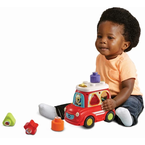 Auf zur lustigen Sortierfahrt mit dem Sortierspaß-Auto! Sortieren, lernen und spielen mit dem Sortierspaß-Auto! Das niedliche Auto erkennt die Formenklötzchen sowie die darauf abgedruckten Zahlen und Tiere und löst passende Sätze und Geräusche aus. Die Formen lassen sich außerdem nach Herzenslust auf dem Autodach stapeln. Wird die Musiktaste gedrückt, können die Kleinen sich lustige Lieder und Melodien anhören. Und natürlich lässt sich das bunte Auto auch einfach schieben!Art.-Nr.: 1691433