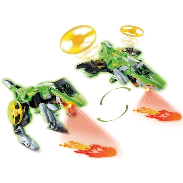 Den Therizinosaurus einschalten und jede Menge wilde Dinosaurierabenteuer erleben! Mit wenigen Handgriffen kann er in einen rasanten Jet und wieder zurückverwandelt werden! Der Therizinosaurus spuckt Feuer und der Jet wirft spektakuläre Projektionen auf den Boden! Los geht’s!Art.-Nr.: 1764218