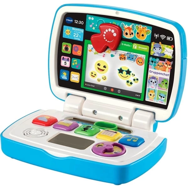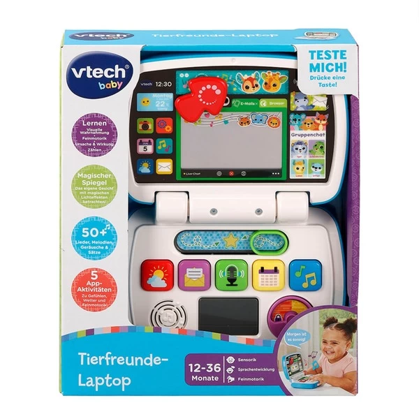 Erster Computerspaß mit dem Tierfreunde-Laptop! Egal ob Tierfreunde kennenlernen, Zählen oder Wettervorhersagen – das liebevoll gestaltete Spielzeug steht für Lernspaß und fördert dank tollem Schieber und bunten Tasten die Feinmotorik. Der integrierte Spiegel zaubert außerdem magische Effekte und zeigt das eigene Gesicht mit lustigen Animationen. Art.-Nr.: 1895994