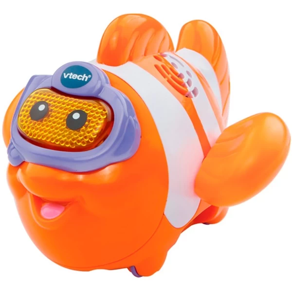 Ich bin ein cooler Clownfisch! Der VTech Tut Tut Baby Badewelt – Clownfisch sorgt für jede Menge Badespaß! Der wasserfeste Clownfisch spricht themenbezogene Sätze, singt und macht lustige Geräusche. Durch die Bewegung der Räder werden Melodien und Geräusche ausgelöst, zudem verfügt er über eine leuchtende Taste zum Drücken. Art.-Nr.: 100004677
