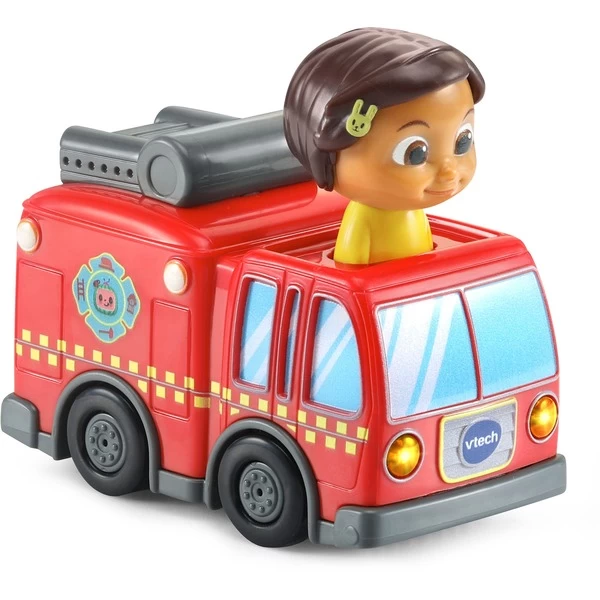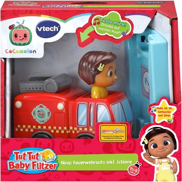 Die Tut Tut Baby Flitzer sind blinkende, sprechende und singende Fahrzeuge zum Spielen und Sammeln! Dieses Feuerwehrauto ist ganz der Kinder-Serie CoComelon nachempfunden. Es kommt mit einer Nina-Spielfigur und einem Schienenstück. Das Auto spricht fröhliche Sätze und spielt klndgerechte Melodien und Lieder aus der Serie ab. Es verfügt über LED-Leuchten an der Vorderseite und reagiert auf die magischen Sensoren anderer Tut Tut Baby Flitzer-Spielsets (separat erhältlich).Art.-Nr.: 1918983