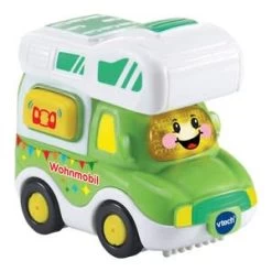 Das Wohnmobil von Vtech spricht fröhliche Sätze, spielt kindgerechte Melodien und Lieder und macht lustige Geräusche. Das Spielzeug appeliert an die Sinne Deines Minis und fördert kreatives Spiel. Wohnmobil-Spielauto mit Funktionen von Vtech Leuchttaste, Taste für Türöffnung und Geräusche, reagiert auf sich bewegende Räder, 3 gesungene Lieder. 6 Kindermelodien, kindersicheres Batteriefach, Batterien (2 x 1,5 V AAA), Abschaltautomatik Soundeffekte, Musik, Lichteffekte Sprache: Deutsch aus robustem Kunststoff ab 12 Monaten Das lustige, farbenfrohe Wohnmobil von Vtech wartet mit einigen spannenden Überraschungen auf. So spricht es auf Knopfdruck fröhliche Sätze, die das Kind zum Spielen und zu eingehender Beschäftigung ermuntern. Es kann auch sechs kindgerechte Melodien und drei gesungene Lieder spielen. Das lädt kleine Kids zum Mitsummen oder -singen ein. Die zusätzliche Taste öffnet die Türen hinten am Fahrzeug und löst dazu passende Geräusche aus. Das Spielgerät reagiert auf jede Bewegung der Räder. Das Wohnmobil fördert die motorischen Fähigkeiten Deines Kindes. Zudem schult es seinen Hörsinn. Das Auto lädt dazu ein, sich Geschichten auszudenken. Die Batterien zum Betrieb des Spielzeugs sind inklusive. Das Batteriefach ist kindersicher und nicht zugänglich für neugierige Kinderhände. Die Abschaltautomatik schaltet das Gerät ab. Das Spielzeug ist aus robustem, langlebigem Kunststoff gefertigt.
